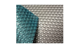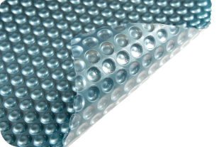 Translucent blue on top to attract heat from the sun, and silver on the bottom to lock the heat in and keep a pool up to 8 degrees warmer.